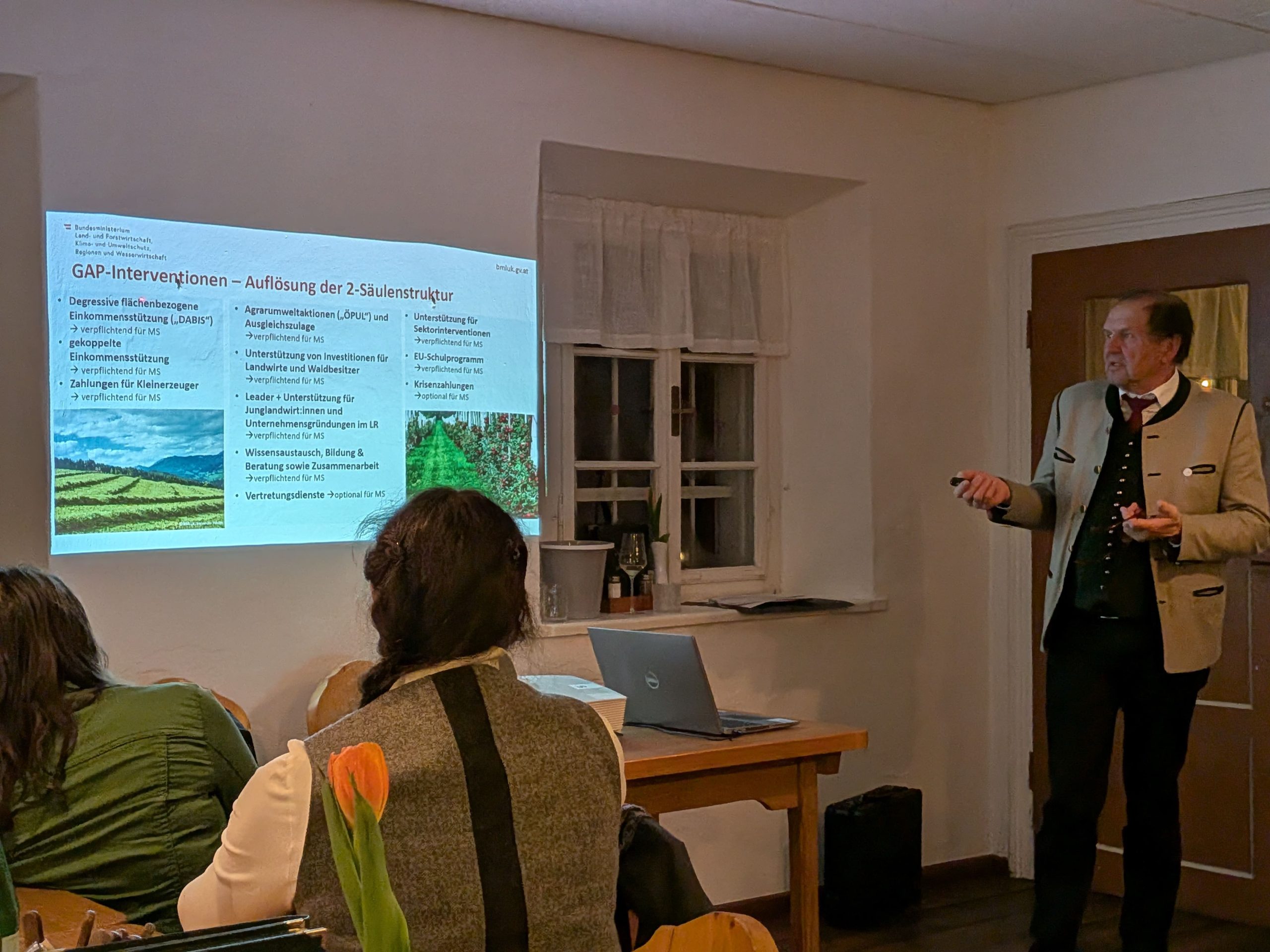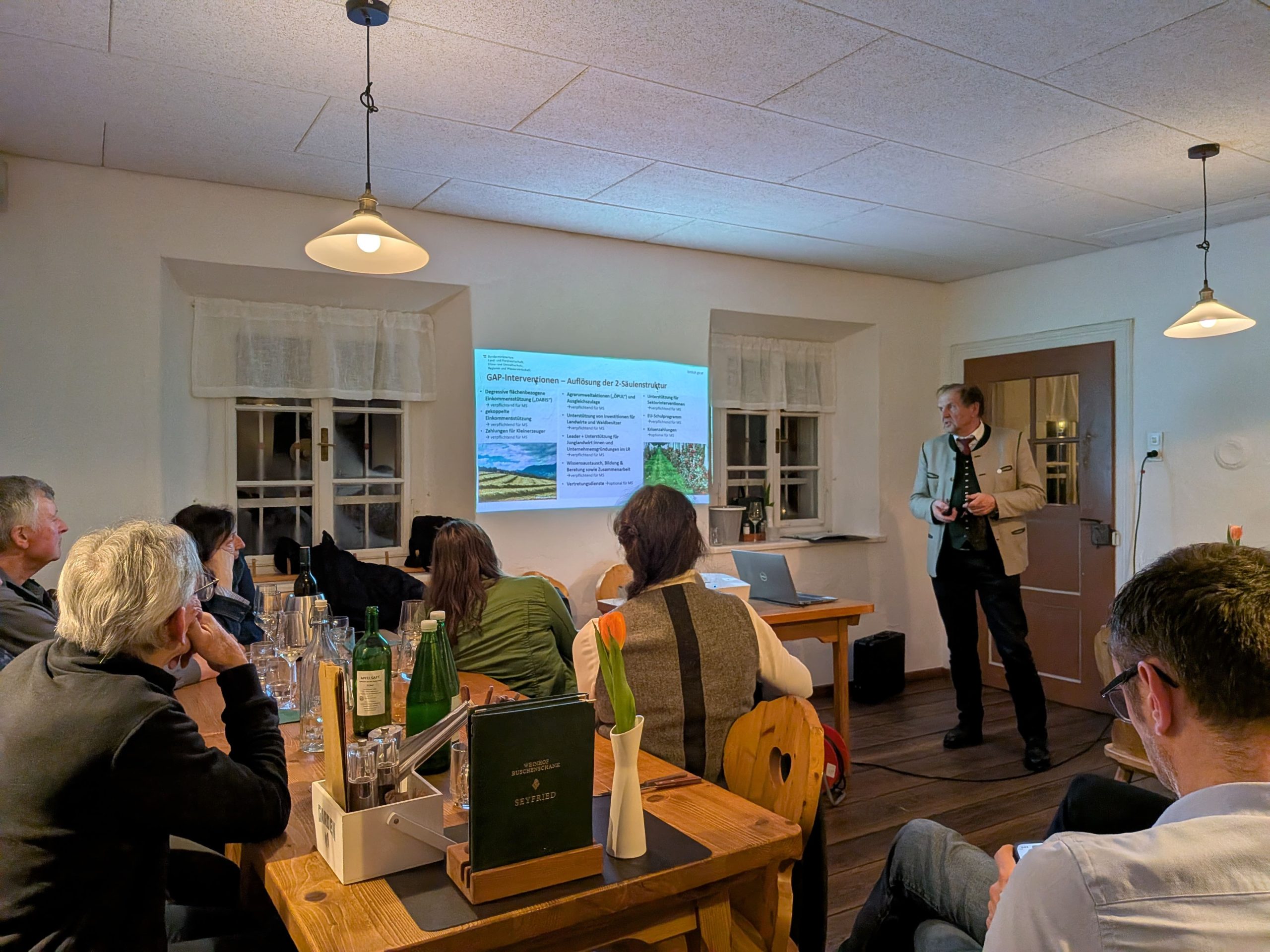 Die ARGE Meister:innen (Arbeitsgemeinschaft der Meisterinnen und Meister in den land- und forstwirtschaftlichen Berufen) ist eine österreichweite Interessensgemeinschaft der geprüften Meister:innen in den land- und forstwirtschaftlichen Berufen. Damit vertritt die ARGE Meister:innen die Interessen von über 35.000 geprüften Meister:innen in ganz Österreich. Bei der diesjährigen Bundes-Frühjahrstagung der ARGE, die Mitte März in Gleisdorf (Bezirk Weiz) stattfand, stellten rund 20 Spitzenfunktionär:innen aus allen Bundesländern wichtige Weichen für die Zukunft. Im Rahmen eines Organisationsentwicklungsworkshops wurden Zukunftsthemen und die programmatische Ausrichtung der ARGE Meister:innen debattiert. Bei einem Kamingespräch mit Kammerdirektor DI Werner Brugner (Landwirtschaftskammer Steiermark) wurde die Ausrichtung der zukünftigen Gemeinsamen Agrarpolitik der EU inkl. der möglichen Knackpunkte sowie andere aktuelle Herausforderungen in der Land- und Forstwirtschaft diskutiert.